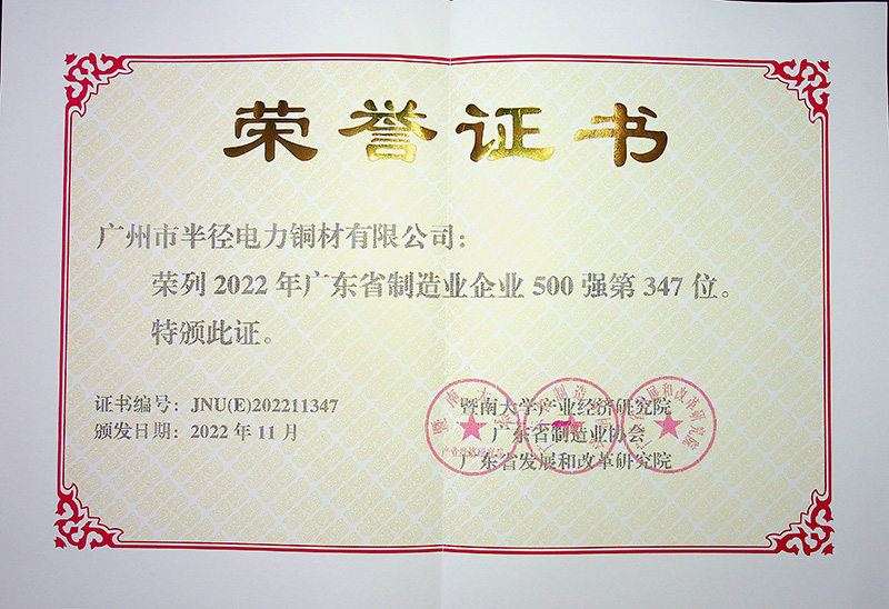 半徑連續(xù)12年榮登“廣東省制造業(yè)500強”榜單